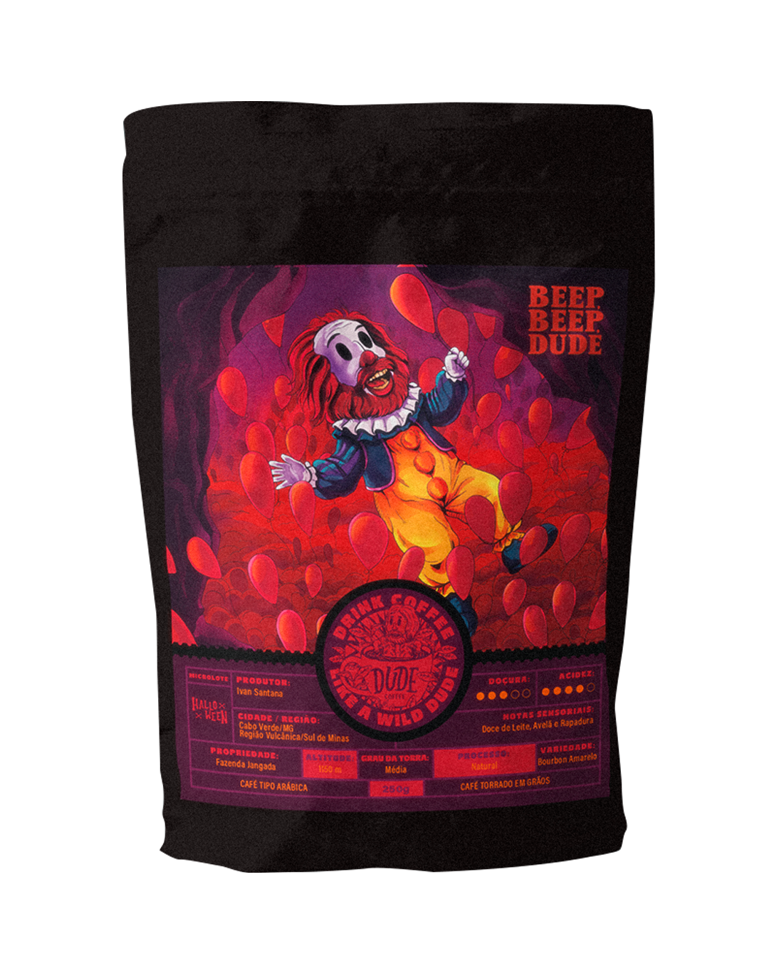 Abriu o pacote e já veio aquela lembrança doce. Beep, Beep, Dude. Esse não bate na porta… Ele aparece do nada, rindo estranho e perguntando se você quer flutuar. É um café especial, doce na medida certa e fácil de beber. Um Bourbon Amarelo natural com notas de doce de leite, avelã e rapadura, entregando uma xícara cremosa, acolhedora e cheia de personalidade. Do coado ao espresso sem perder a graça. Embalagem de 250g, disponível em grão ou moído.