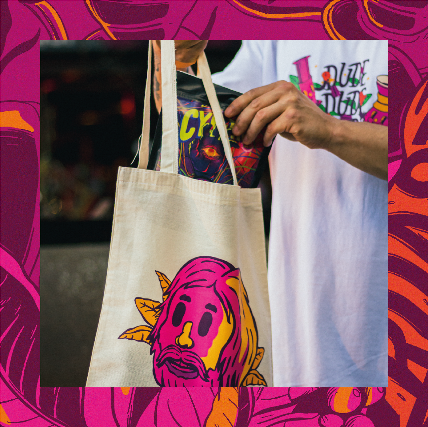 Além do café e da cerveja, o Dude também anda por aí em forma de camiseta, ecobag e umas bugigangas estilosas.